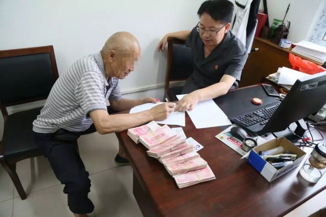 “我年纪大了,腿脚也不中了,前后都是汪法官在操心,就冲汪法官对我这个事儿这么上心,我愿意再等十年。”在河南省郑州市中原区人民法院执行员汪学军的办公室,收到8万元赔偿款的樊大爷激动地说着。
