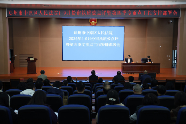 10月20日上午,中原区人民法院召开2025年1-9月份审执质效点评暨第四季度重点工作安排部署会,全体干警参加会议。