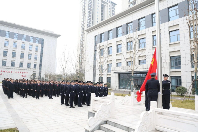 岁序更替,华章日新。为激励干警以昂扬姿态开启新年新征程,进一步凝聚人心、鼓舞干劲,1月4日上午,中原区人民法院举行庄严的迎新年升国旗仪式。全院干警整齐列队、精神饱满,满怀对祖国的无限热爱与对法治的坚定信仰,共同迎接2026年首个工作日。升旗仪式由党组成员、副院长周国华主持。