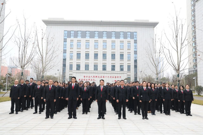 升旗仪式后,党组书记、院长王玮琦代表院党组向过去一年辛勤付出、忠诚履职的全体干警及工作人员,致以诚挚的问候和新年的祝福。王玮琦院长指出,刚刚过去的2025年,全院上下紧紧围绕“公正与效率”工作主题,坚持服务大局、司法为民、公正司法,审判执行主责主业稳中有进,结案率、服判息诉率等核心指标持续向好,在营造法治化营商环境、维护社会安全稳定、保障群众合法权益等方面取得了扎实成效,为辖区经济社会高质量发展提供了坚实的司法保障。针对新一年的工作,他向全体干警提出四点要求:一要锚定目标,在服务大局上展现新作为。 要自觉将法院工作置于发展大局中谋划推进,精准提供司法服务,持续优化营商环境,以高质量司法护航高质量发展。二要坚守初心,在司法为民上践行新举措。 要始终坚持以人民为中心的发展理念,深化便民利民机制,用心用情解决好群众在司法领域的急难愁盼问题,让公平正义更加可感可触。三要聚焦主责主业,在公正司法上实现新提升。 要狠抓审判管理,深化司法改革,不断提升司法能力、审判质效和司法公信力。四要固本强基,在队伍建设上呈现新气象。 要持续加强政治建设、能力建设、作风建设,一体推进政治素质、业务素质、职业道德素质,夯实法院工作长远发展根基。此次升旗仪式不仅是一次爱国主义教育,更是一次统一思想、振奋精神的动员会。干警们纷纷表示,将以更加坚定的信念、更加饱满的热情、更加扎实的作风,全身心投入新一年工作,努力书写无愧于时代、无愧于人民的司法新篇章,为更高水平的平安中原、法治中原建设作出新的更大贡献。